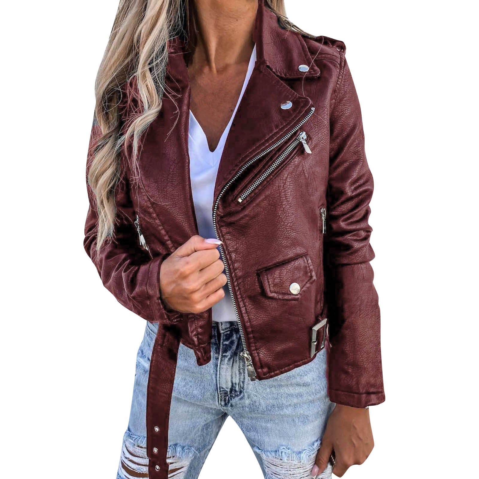 Jaqueta de couro PU feminina AZZA