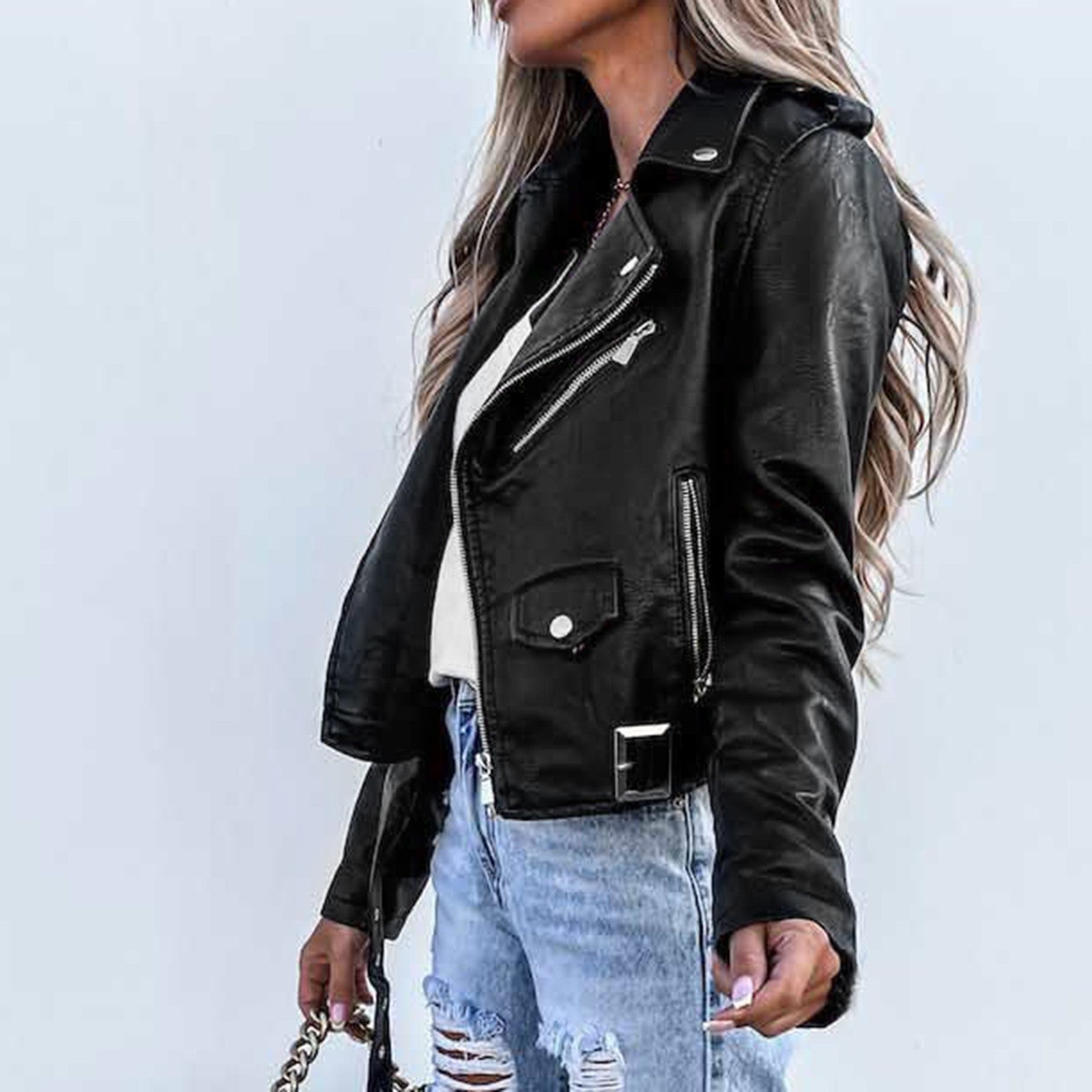 Esta jaqueta feminina em couro PU une sensualidade, conforto e estilo contemporâneo. Seu design de zíper curto valoriza a silhueta feminina, oferecendo um toque moderno ideal para as temporadas de outono e inverno. Além de destacar a beleza natural, proporciona proteção contra o frio sem abrir mão da elegância, sendo uma peça versátil e indispensável no guarda-roupa.